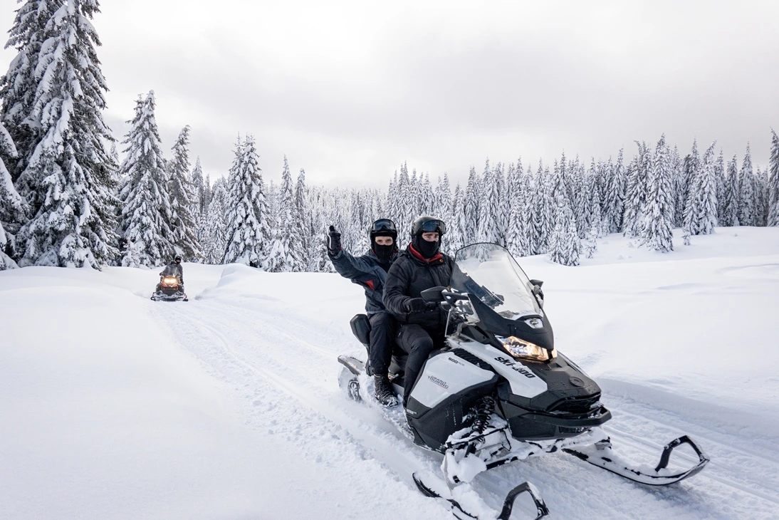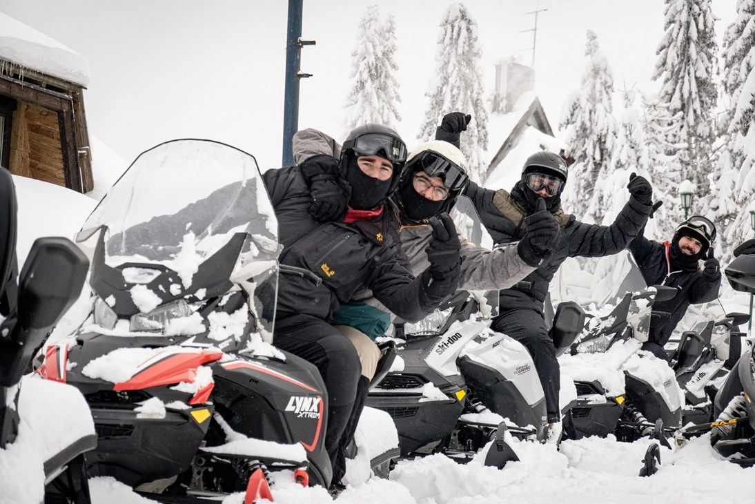 Kopaonik snowmobile tours operate during the winter season and depend on natural snow conditions. The season usually starts in December and lasts until March, closely aligned with the Kopaonik ski season. During the snowmobile excursions season, shared guided snowmobile tours at Kopaonik depart every full hour between 10:00 and 17:00. On selected days, the last snowmobile tour takes place after sunset, offering a unique night ride experience through snowy forests and open mountain meadows. All Kopaonik snowmobile tour departures start from the center of Kopaonik Ski Resort, near Konaci. Tours are always led by local professional guides, ensuring safety and a high-quality experience. Please note: there is no self-drive snowmobile rental at Kopaonik – all rides are organized exclusively as guided tours.